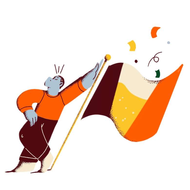 Todos levantaban una copa de cerveza belga con la inscripción “Fier op ons bier” —«Orgullosos de nuestra cerveza»—. Al fondo, sobre las columnas doradas de la entrada medieval de la Casa de los Cerveceros, ondeaba una bandera belga cuyo elemento amarillo central había sido transformado gráficamente en la silueta de una copa de cerveza.