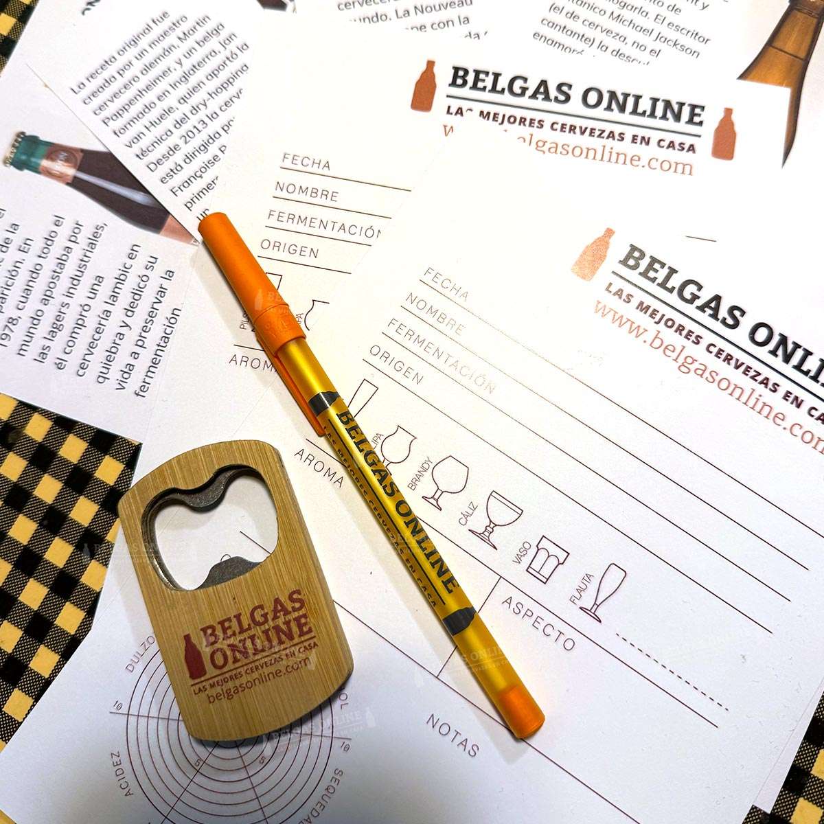 Abridor BelgasOnline + Bolígrafo + Fichas de cata impresas + Hojas de cata en blanco