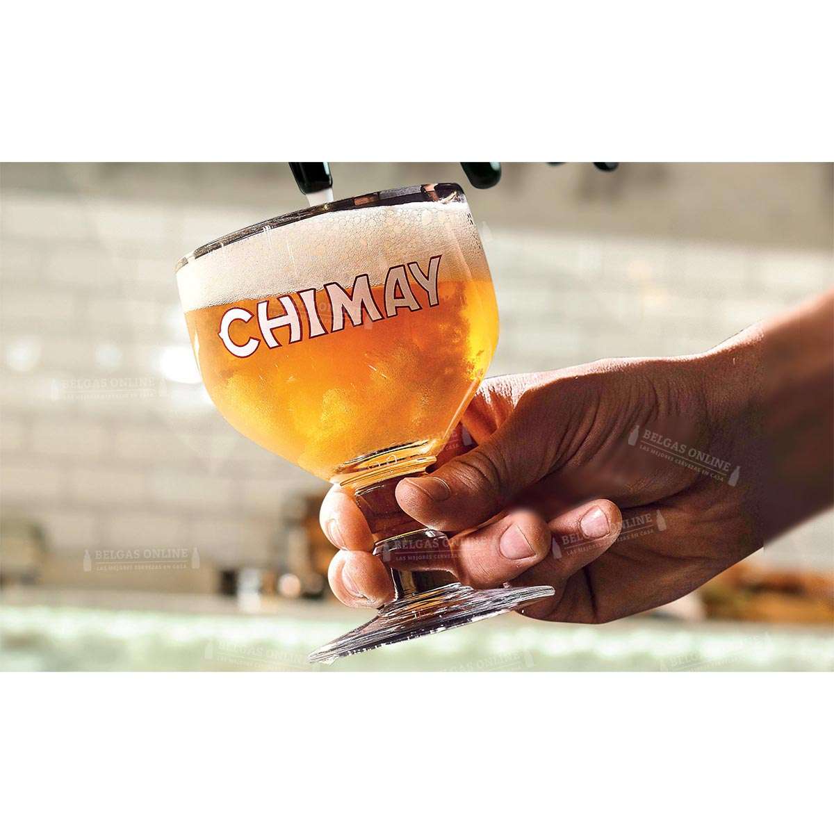 TEMPERATURA DE SERVICIO: Entre 8-10 °C, en copa tipo Cáliz (copa Chimay). La copa Chimay tiene una aureola dorada en el borde y dos anillos en el tallo que no son decorativos: indican la cantidad ideal de servicio.