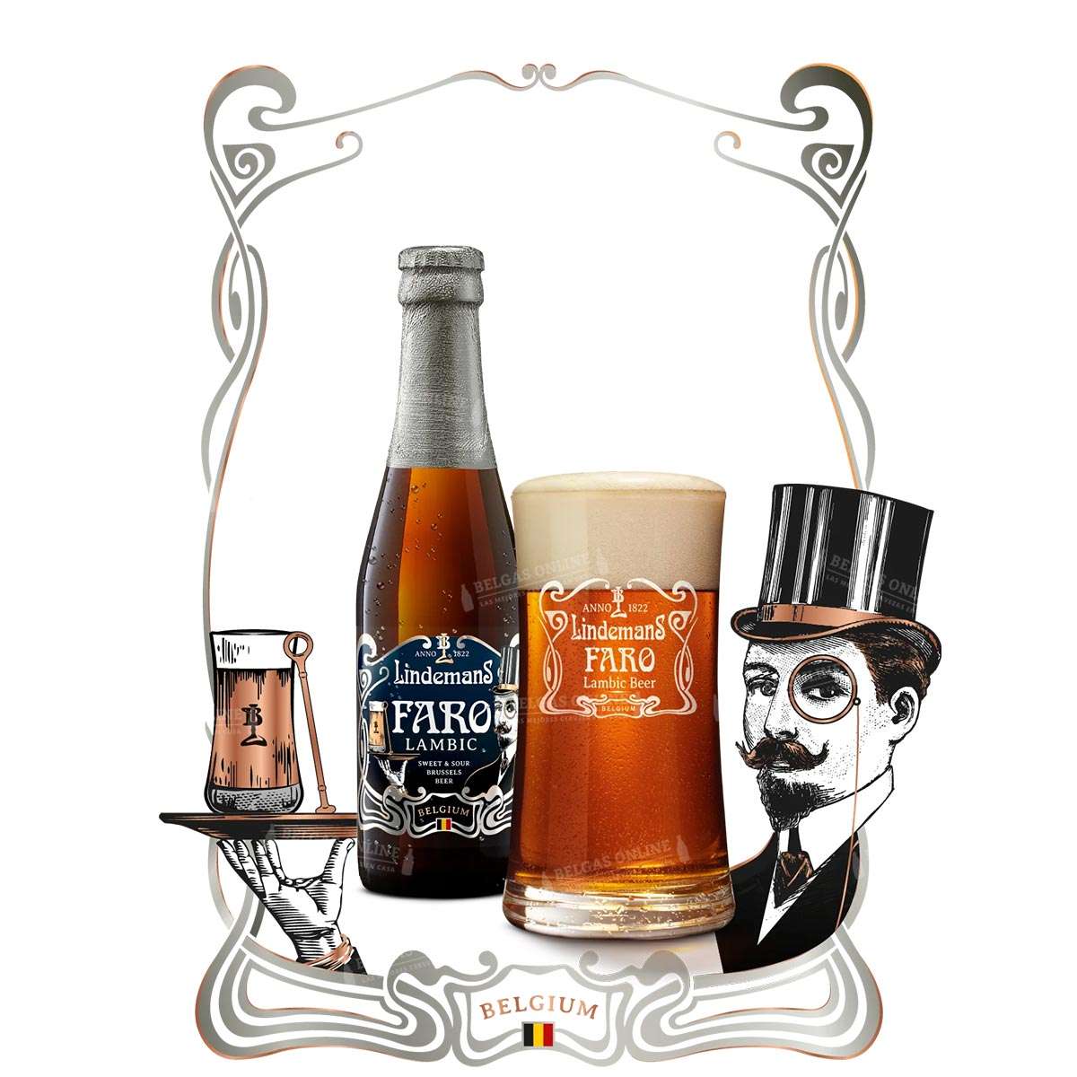 La cerveza de la epoca de Bruegel. Faro Lambic de 4,5%: lambic madurada en roble con azucar candi belga. Agridulce, acaramelada y con 500 anos de tradicion.