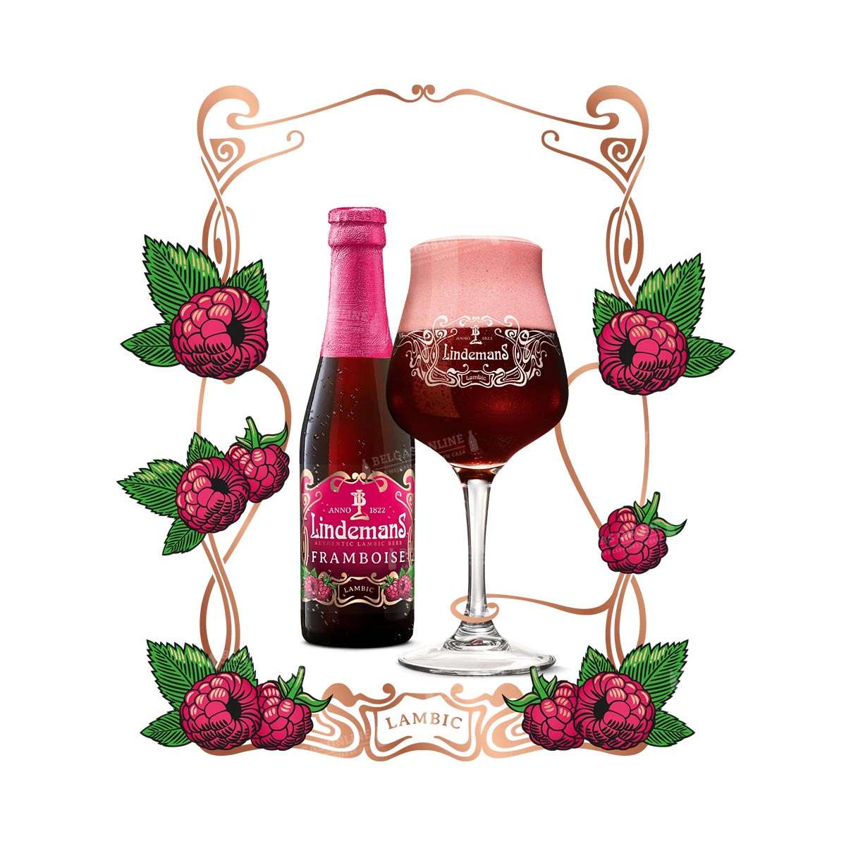 Lindemans Framboise de Brouwerij Lindemans es una Fruit Lambic de frambuesa de 2,5% vol. y la fruit lambic líder de categoría a nivel mundial. Zumo de frambuesa fresco (30% en volumen) mezclado con lambic de fermentación espontánea, macerado y pasteurizado: una cerveza rojo púrpura espectacular, dulce, aromática y con la acidez sutil de la base lambic que evita el empalague. Desde 1980, Lindemans Framboise es la referencia absoluta de las fruit lambics de frambuesa.
