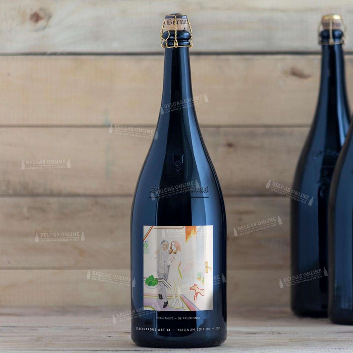 Edición limitada en formato magnum que celebra la Abt 12, la cerveza más emblemática de la abadía. La botella de 150 cl presenta una etiqueta diseñada especialmente para esta edición, con una obra del pintor belga Ivan Theys, figura destacada del expresionismo figurativo flamenco. La pieza reinterpretada, The Arnolfinis (1970), es su visión contemporánea del célebre retrato de Jan van Eyck de 1434, aportando a la botella un carácter artístico y coleccionable.