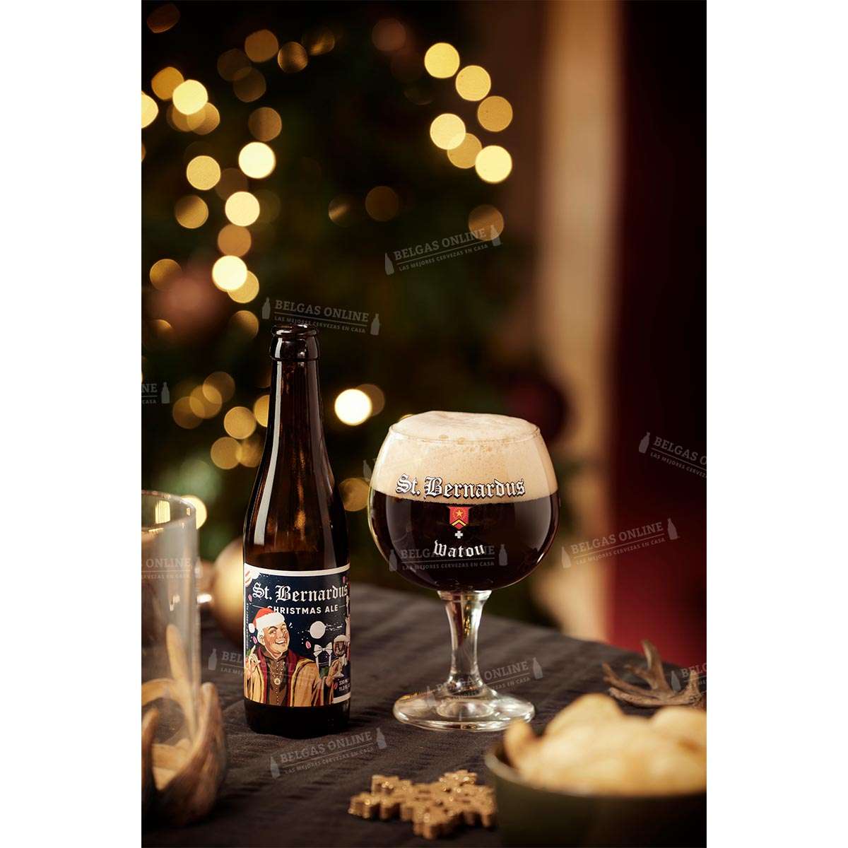 St. Bernardus Christmas Ale de Brouwerij St. Bernardus es una cerveza de Navidad de 10% vol. elaborada en el estilo clásico Quadrupel de las mejores cervezas de abadía belgas. Con la misma levadura de Sint-Sixtus que define a toda la gama y un carácter que rivaliza con la complejidad de la Abt 12, la Christmas Ale añade especiación invernal, vivacidad cítrica y aromas de castañas asadas a la potencia oscura de St. Bernardus. Rojo-castaño oscuro, con aromas de caramelo, fruta oscura, anís, pan de especias y chocolate. La cerveza perfecta para calentar el corazón en una noche fría de invierno.
