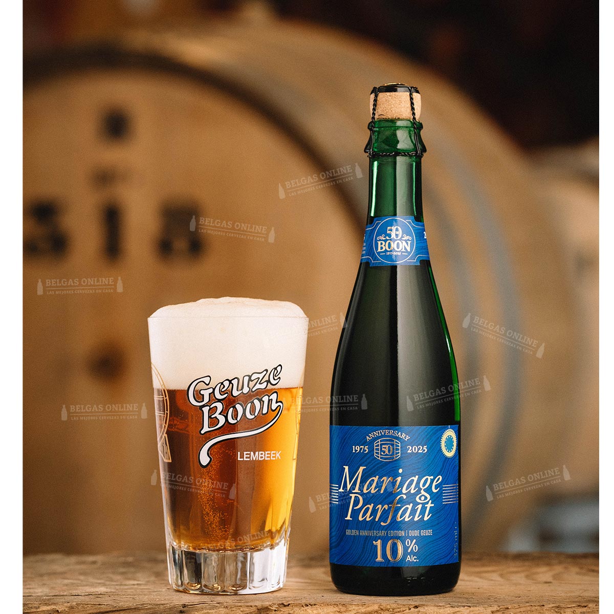 Creada especialmente para conmemorar los 50 años de la Brouwerij Boon, esta versión excepcional de Mariage Parfait alcanza los 10 % de alcohol, símbolo de medio siglo de maestría en la elaboración de lambic. Envejecida durante varios años en grandes toneles de roble, representa la culminación de la tradición y el saber hacer de Frank Boon, un verdadero homenaje al arte de la fermentación espontánea.