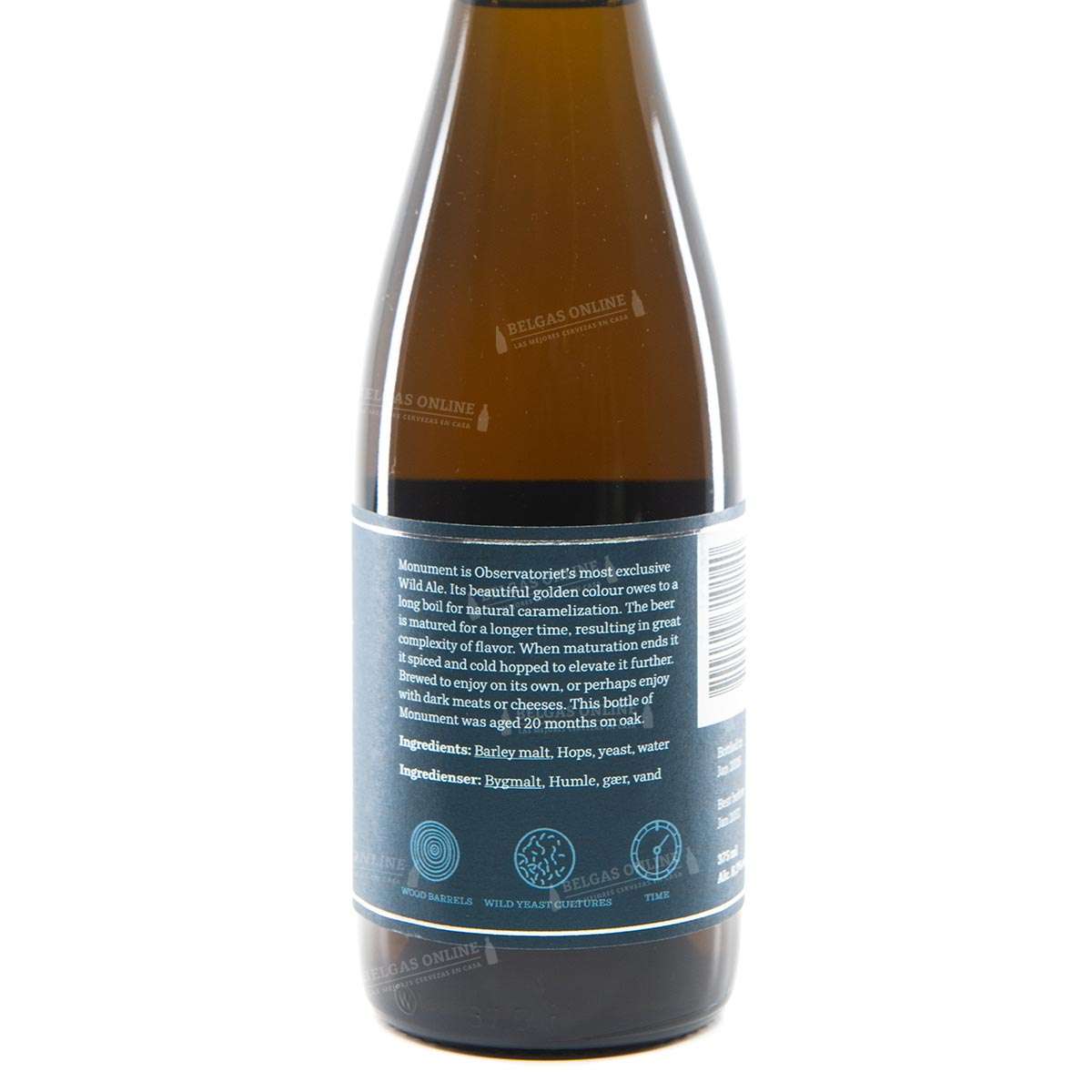 Monument es la referencia más exclusiva de Observatoriet, con tiradas extremadamente limitadas y una demanda creciente en el circuito internacional de cervezas de fermentación salvaje. Con 20 meses de crianza en roble y una puntuación de 4,03 en Untappd sobre más de 600 valoraciones, es una Wild Ale que compite con las mejores producciones belgas de guarda. En BelgasOnline la conservamos en condiciones óptimas de temperatura para proteger la evolución de sus cultivos salvajes. Si buscas una cerveza para una ocasión especial que dialogue con la tradición de las vieilles belgas pero desde la perspectiva nórdica, Monument es esa cerveza.